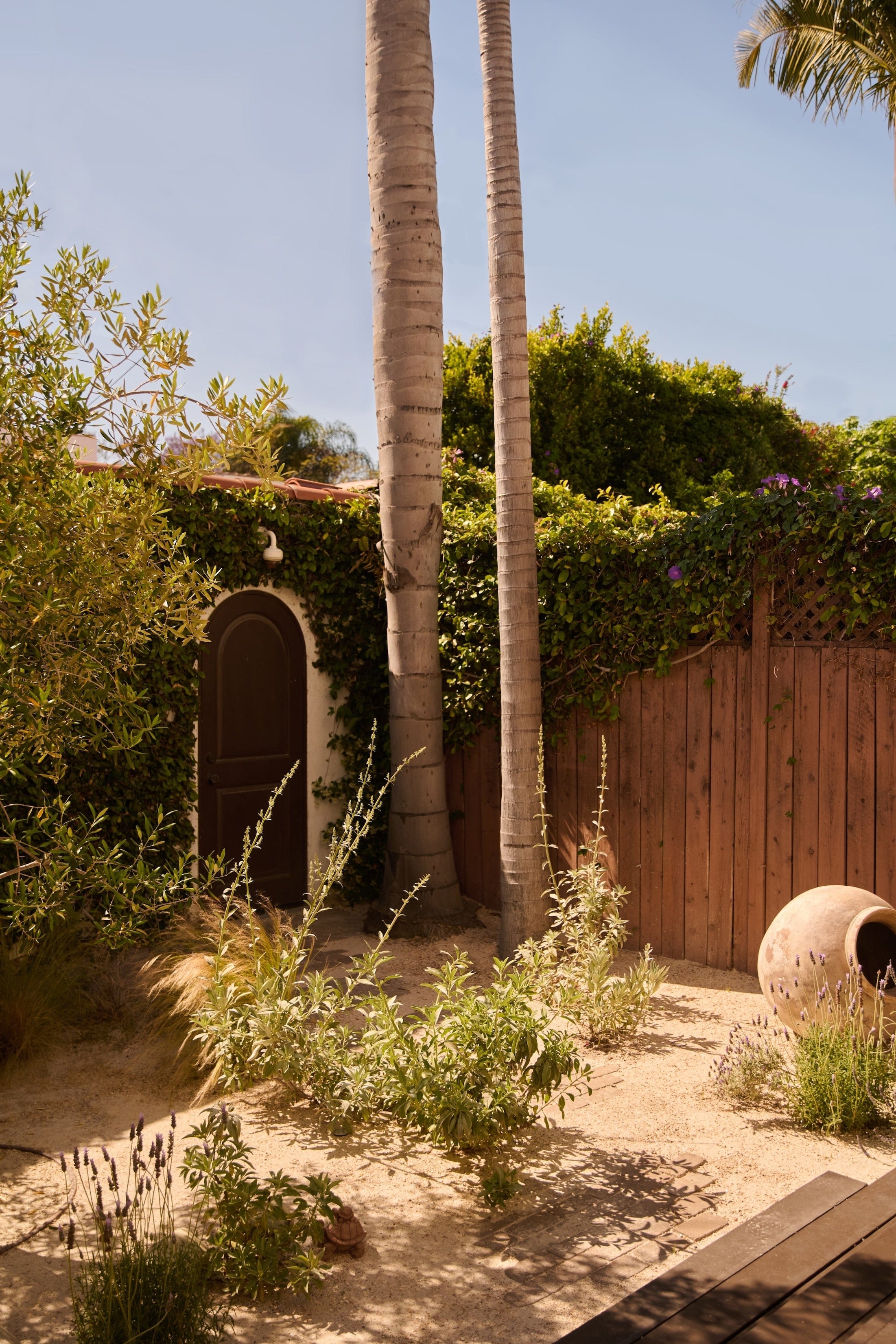 Discreetly tucked away in the heart of West Hollywood, this exquisitely appointed 1929 Spanish upstairs/downstairs duplex whispers of old-world romance and artistic possibility. Beyond its gated entrance, a lush, secluded courtyard invites you to wander beneath the dappled light, an intimate prelude to the magic that awaits within. Inside, a dramatic foyer with original tiled stairs and a glowing stained glass window you’ll find separate, private entries to each residence. Both upstairs and downstairs spaces offer a 2-bedroom, 2-bathroom floorplan plus a bonus room, each brimming with soulful character, beamed ceilings, arched doorways, updated kitchens and baths, a grand fireplace, and hand-carved wood doors that speak to the craftsmanship of another era. The gardens, reimagined by ORCA with native specimens, unfold like a love letter to LA’s natural beauty. A large detached garage has been converted into a studio or flex space, perfect for creative pursuits. A long, gated driveway completes the picture, offering privacy and ease. With a prime location that offers easy proximity to Melrose Place and all that WeHo offers, this rare sanctuary is more than a home, it’s a feeling.