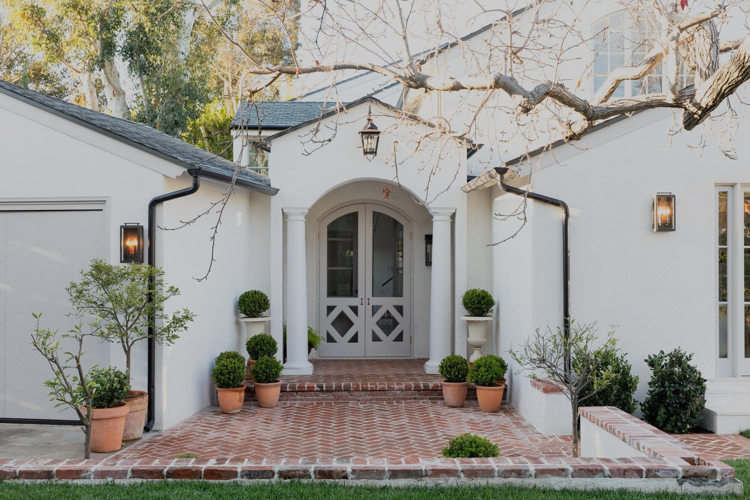 Spectacular style and unparalleled privacy came together seamlessly in this one-of-a-kind 4 bed, 5 bath masterpiece in prime Hancock Park. Uniquely sited on an expansive, 17,000+ sf lot, carefully considered details abounded in this designer-owned compound. Set behind high hedges and a securely gated, tree-lined driveway, each indoor space effortlessly flowed to nature and the outdoors, allowing natural light to flood in from every direction. A grand entrance through double front doors led to a spectacular, sun-drenched arched walkway that opened to a formal living room with herringbone oak floors and de Gournay hand painted wallpaper. A parlor room with a custom built-in bar doubled as a library, only steps from the front yard and limestone pool patio. The expertly designed, airy chef’s kitchen included top-of-the-line appliances and was perfectly situated between a dramatic breakfast area and a more casual living space, all of which opened to outdoor dining and lounging spaces, anchored by an outdoor fireplace and a sparkling pool. With a peaked cathedral ceiling, imported brick floors, and French doors on three sides leading to outdoor spaces, the dining room created a refined entertaining hub. A downstairs office and exquisite powder room completed the first floor. Upstairs, the primary suite featured vaulted ceilings, custom cabinetry, dual bathrooms, and direct access through a Dutch door with a dramatic, curved staircase to the swimming pool below. Three additional generously-sized bedrooms with high beamed ceilings and bright light completed the perfect upstairs floor plan. The spacious and paneled attached garage served as a fantastic bonus space. Steeped in tradition and re-imagined for today’s living, no detail was left untouched in this remarkable retreat.